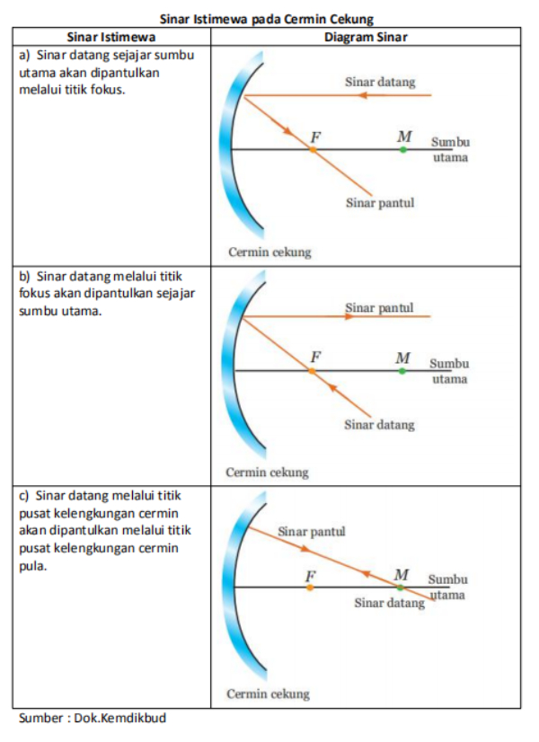 Gambar jalannya berkas sinar pada cermin cekung;